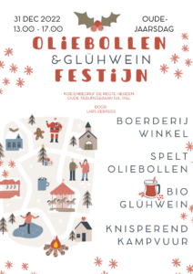 Je kent het wel! Het is oudejaarsdag en je bent maar aan het afwachten tot het avond wordt, want dan heb je dat leuke feest of dat mooie diner waarvoor je uitgenodigd bent gepland staan. Eigenlijk ben je dus al heel vroeg op die dag de laatste uren van de laatste dag van het jaar aan het aftellen en afwachten. Dat kan leuker!! Jazeker, daarom organiseren we 31 december a.s. van 13.00u tot 17.00 uur hét ‘Oliebollen & Glühwein festijn’ bij Koeienbedrijf de Regte Heijden. Bio speltoliebollen en bio glühwein zal er naar hartenlust geserveerd worden deze middag. Bij glühwein en oliebollen hoort uiteraard een knisperend kampvuur, dus ook daar zullen we voor zorgen. We hopen met jullie dit moment te mogen delen op de laatste dag van het jaar! De winkel is 31 december geopend van 9:00 tot 17:00.